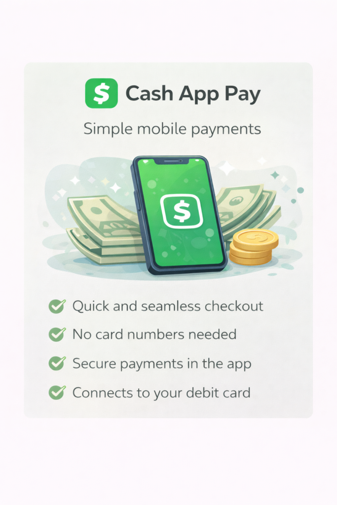 Cash App Pay allows you to complete your purchase directly through the Cash App on your mobile device.