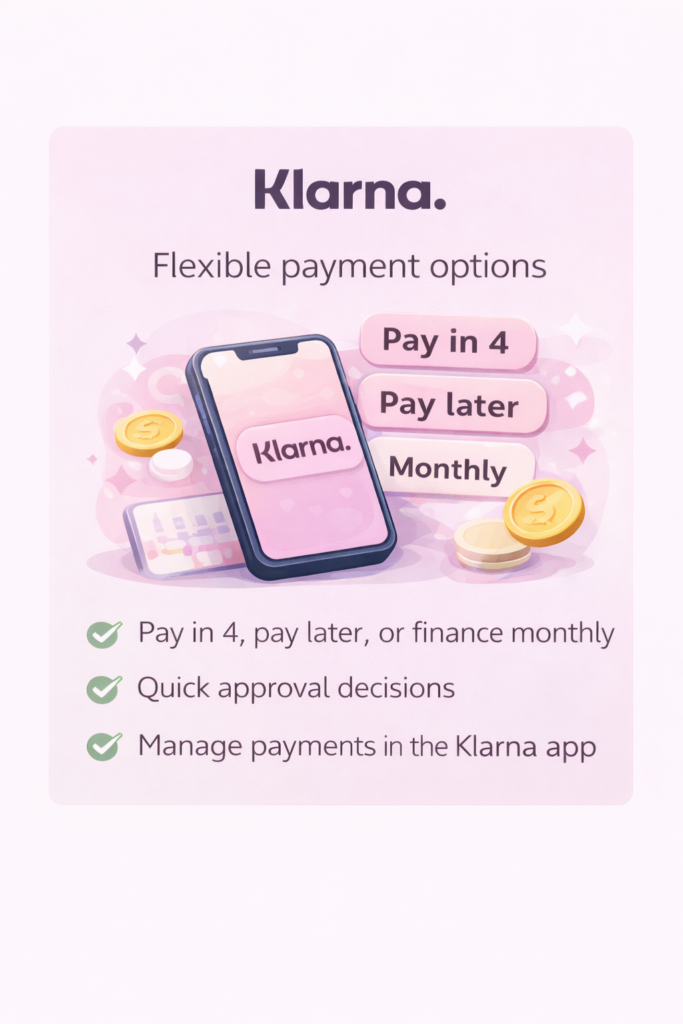 Klarna provides flexible payment options so you can receive your treatment now and pay later in a way that works for your budget.